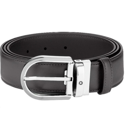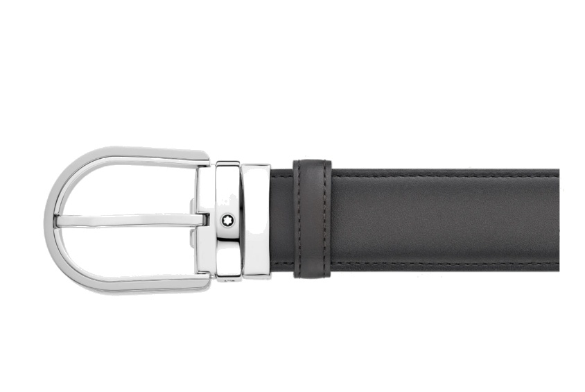 Кожаный ремень с пряжкой в форме подковы серого цвета 35 мм от магазина премиальных ручек Premium Pens в Ставрополе.
